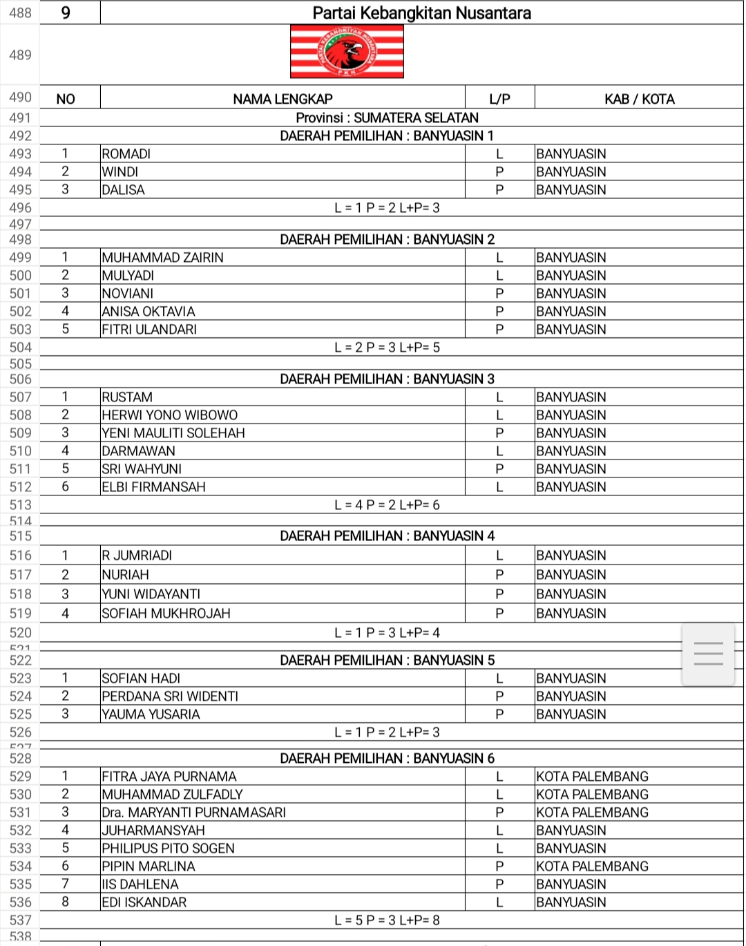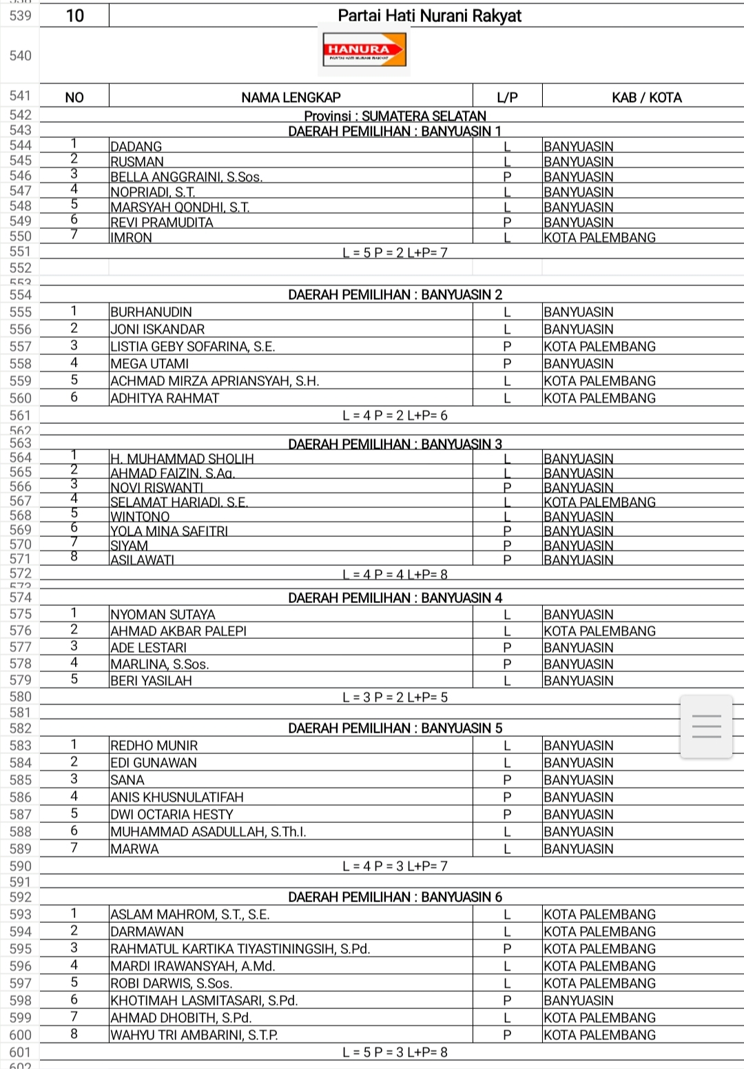 DCT Anggota DPRD Banyuasin PKN & HANURA