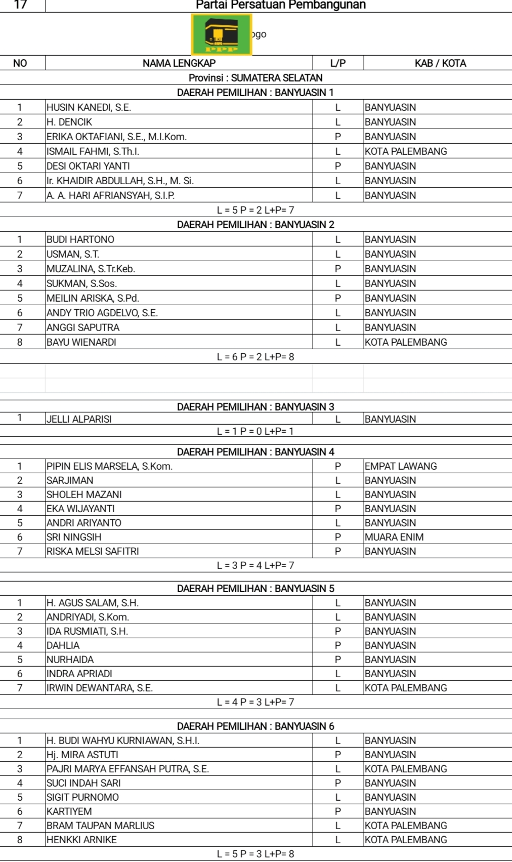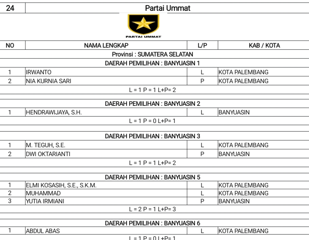 DCT Anggota DPRD Banyuasin PPP & Partai Ummat