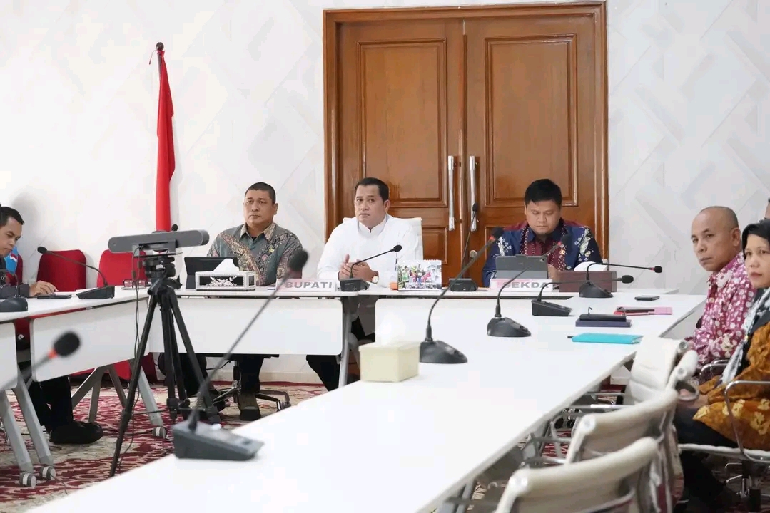 Bupati Banyuasin menghadiri Zoom Meeting Launching Gerakan Cepat Perbaikan RTLH dan Sanitasi Tahun 2025 bersama Gubernur Sumsel di Ruang Rapat Guest House Rumah Dinas Bupati Banyuasin pada Jumat (14/03). Dalam pertemuan ini, Bupati Askolani didampingi oleh Sekretaris Daerah Kabupaten Banyuasin, Ir. Erwin Ibrahim, ST., MM., MBA., IPU., ASEAN Eng, serta Kepala Dinas Perkimtan Kabupaten Banyuasin, Ir. H. M. Riyan Aditya Saputra, MT., IPM., ASEAN Eng.
