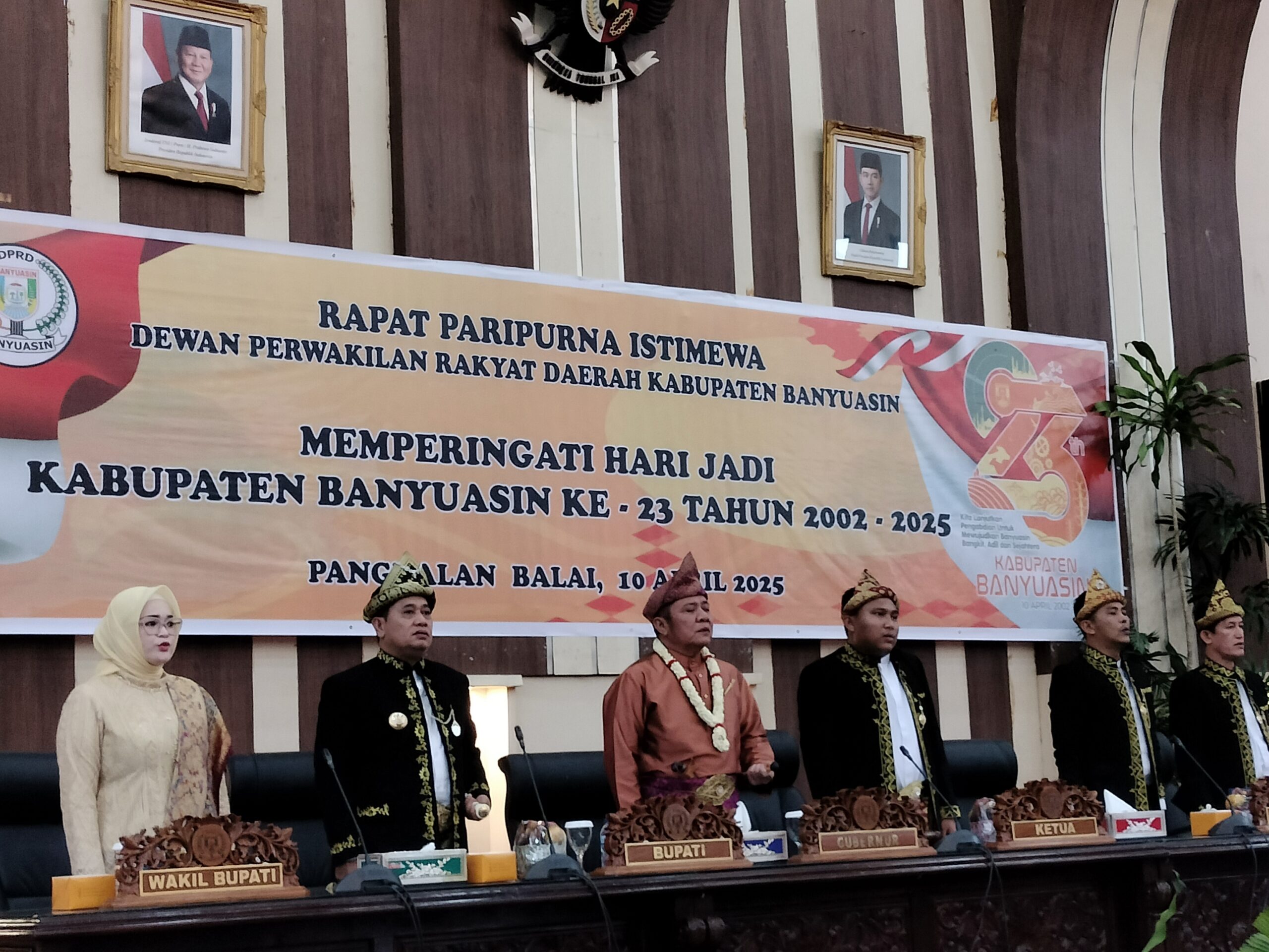 BANYUASIN,Sumselku.com – Sidang Paripurna Istimewa DPRD Kabupaten Banyuasin dalam rangka Hari Ulang Tahun (HUT) ke-23 Kabupaten Banyuasin berlangsung khidmat dan penuh makna di Gedung Paripurna DPRD Banyuasin, Kamis (10/4/2025). Paripurna ini dihadiri langsung oleh Gubernur Sumatera Selatan H. Herman Deru, jajaran Forkopimda, para kepala daerah tetangga, serta tokoh-tokoh masyarakat dari berbagai penjuru.