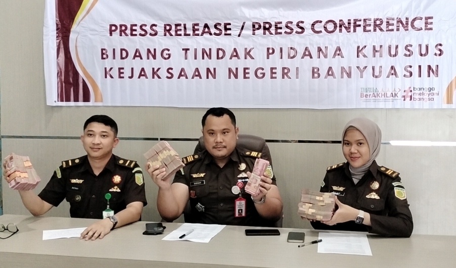 “Total sampai hari ini kita berhasil menyelamatkan uang negara sebesar Rp300.433.192,45 dari tiga terdakwa,” kata Kepala Kejaksaan Negeri Banyuasin Reymund Hasdianto Sitohang melalui Kasi Pidsus Giovani dalam press release yang digelar di Aula Kejari Banyuasin, Senin (26/5).