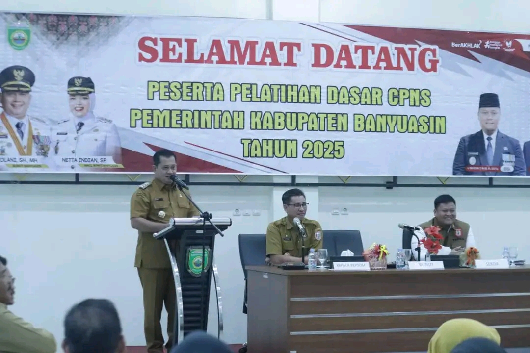 Palembang,SUMSELKU.COM – Bupati Banyuasin, Dr. H. Askolani, S.H., M.H., didampingi Sekda Banyuasin, Ir. Erwin Ibrahim, S.T., M.M., M.B.A., IPU., ASEAN Eng., membuka kegiatan Pelatihan Dasar CPNS Pemerintah Kabupaten Banyuasin Angkatan VIII Tahun 2025, Senin (25/08/2025).